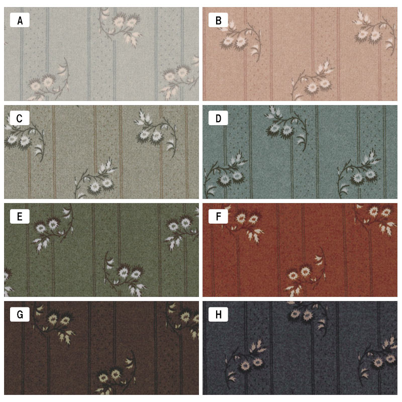 This collection is rich in variety such as leafless tree pattern that is used in Yoko Saito's works, wood grain pattern that is indispensable for appliqué, large flower print fabric that can only be found at "Quilt Party", check and small flower pattern that is simple but essential for making works, etc.