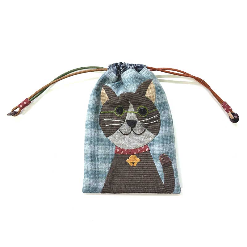 Kit of "Stuffed Cat and Drawstring Pouch" in Patchwork Animals 3.