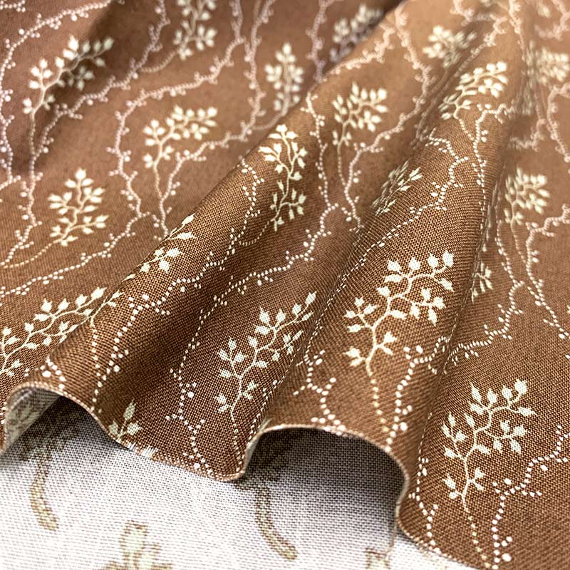 USA print fabric with delicate pattern on a chic brown backgroud.