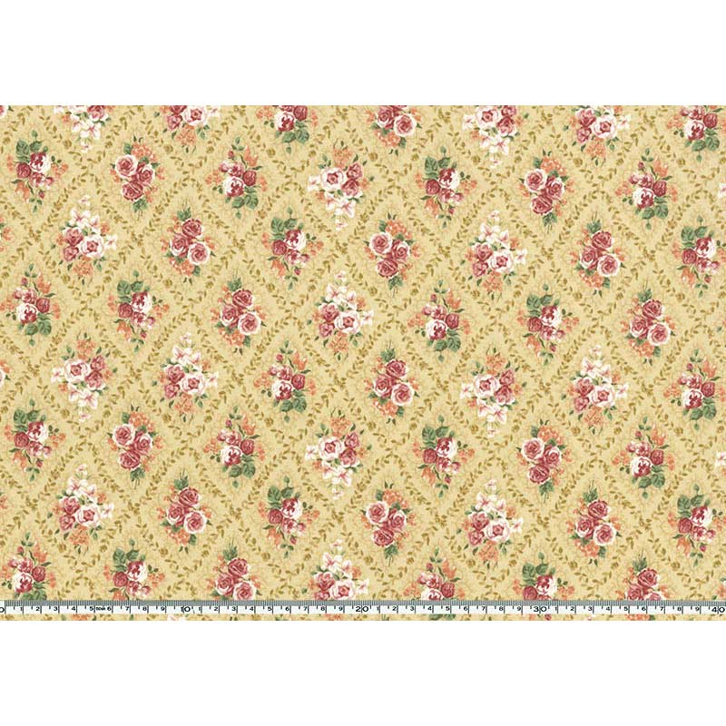 Cotton print fabric with rose bouquet with an antique stmosphere.