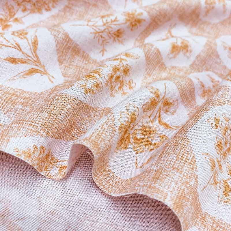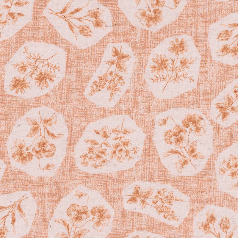 Print fabric with simple flowers.