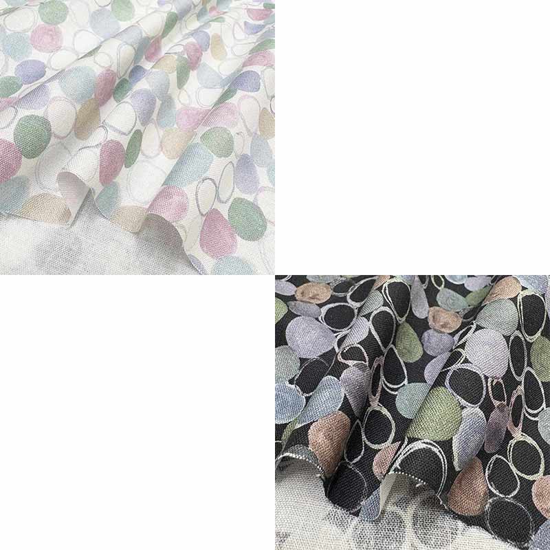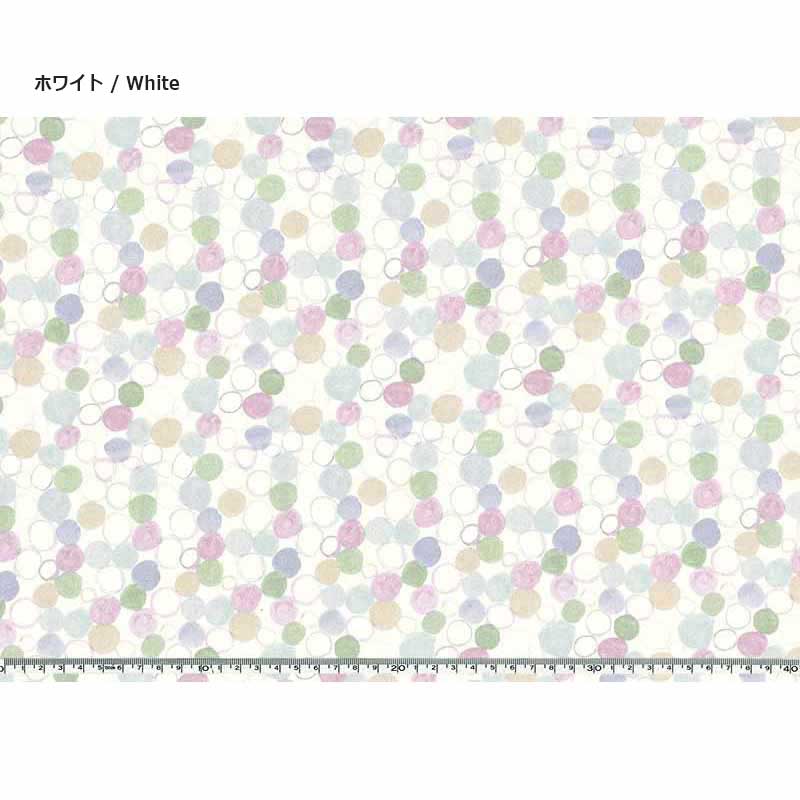 Print fabric with a pattern of watercolor-like polka dots in cute antique-style feeling.