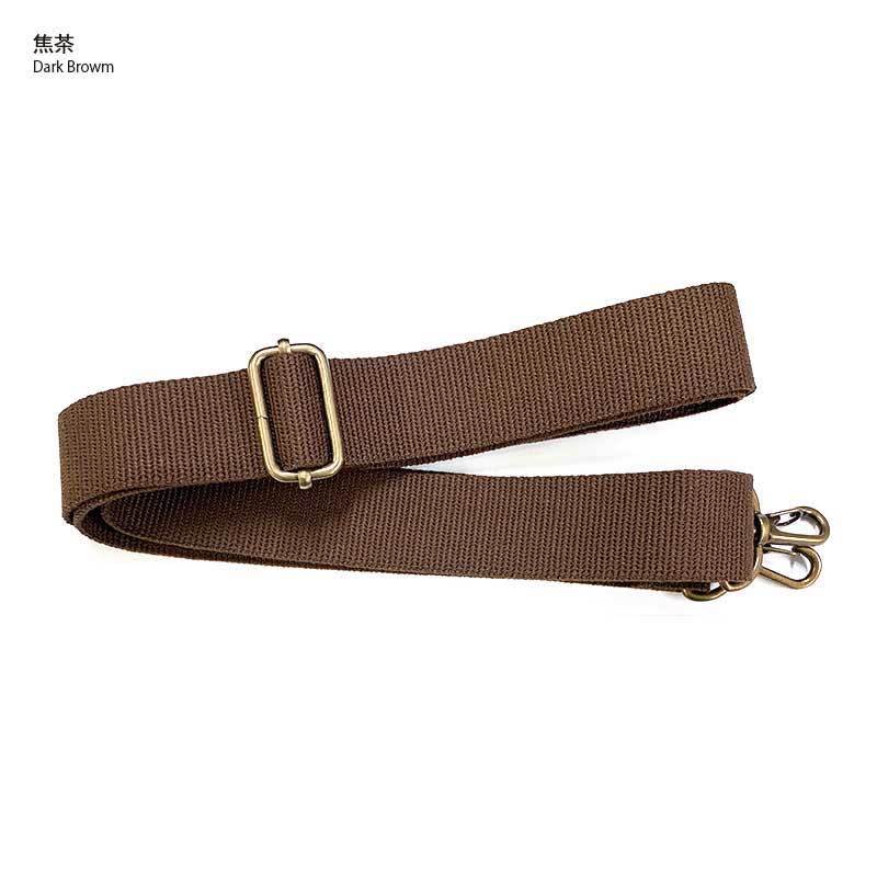 Acrylic tape shoulder strap with metal sliding bar buckle and metal swivel clip.