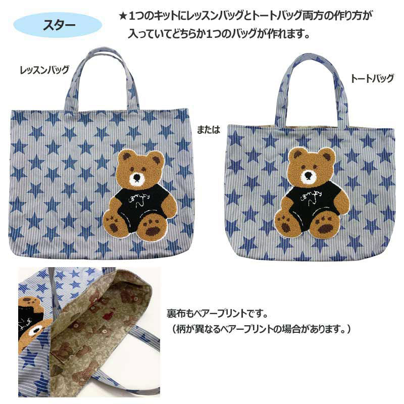 Kit contents: Fabrics (outer, lining), bear patch, English instruction, photograph