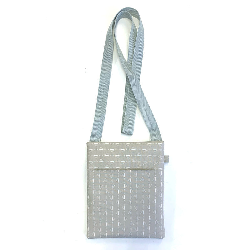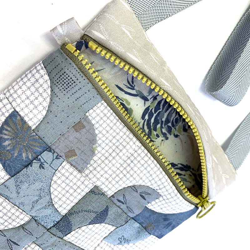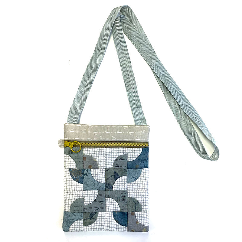 This is the sacoche with "Drunkard's Path pattern" with white and graish blue fabrics.