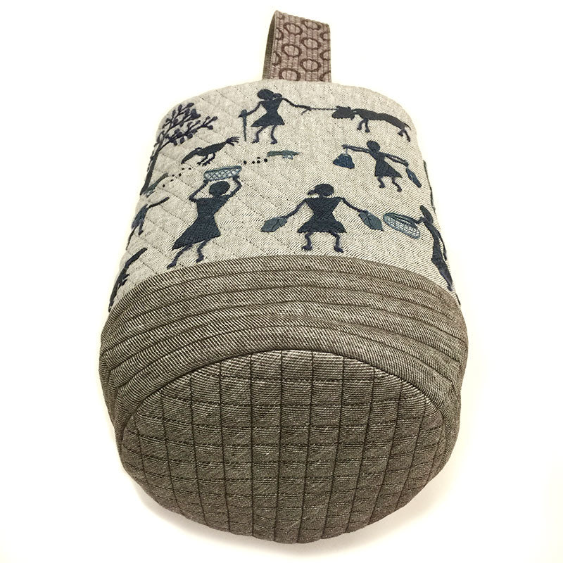 Kit of bag with appliques inspired by the mural paintings of the Warli people who live in Maharashtra in western India.