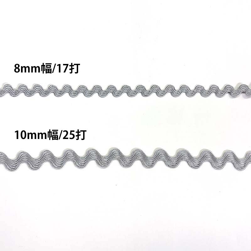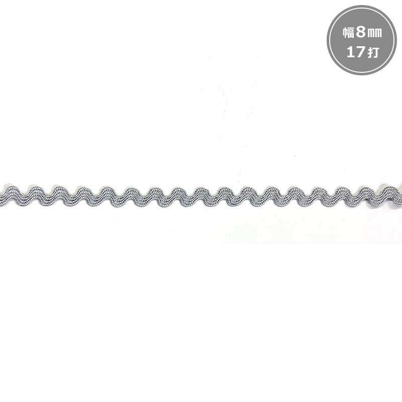 Rayon Ricrac Ribbon, 8mm width, 17 waves (BEL-120), Light gray
