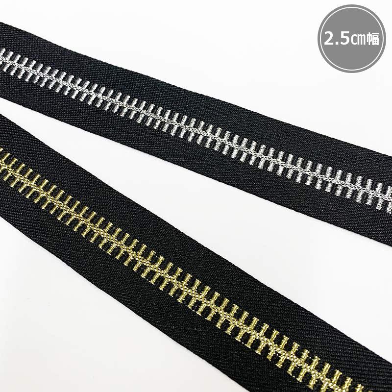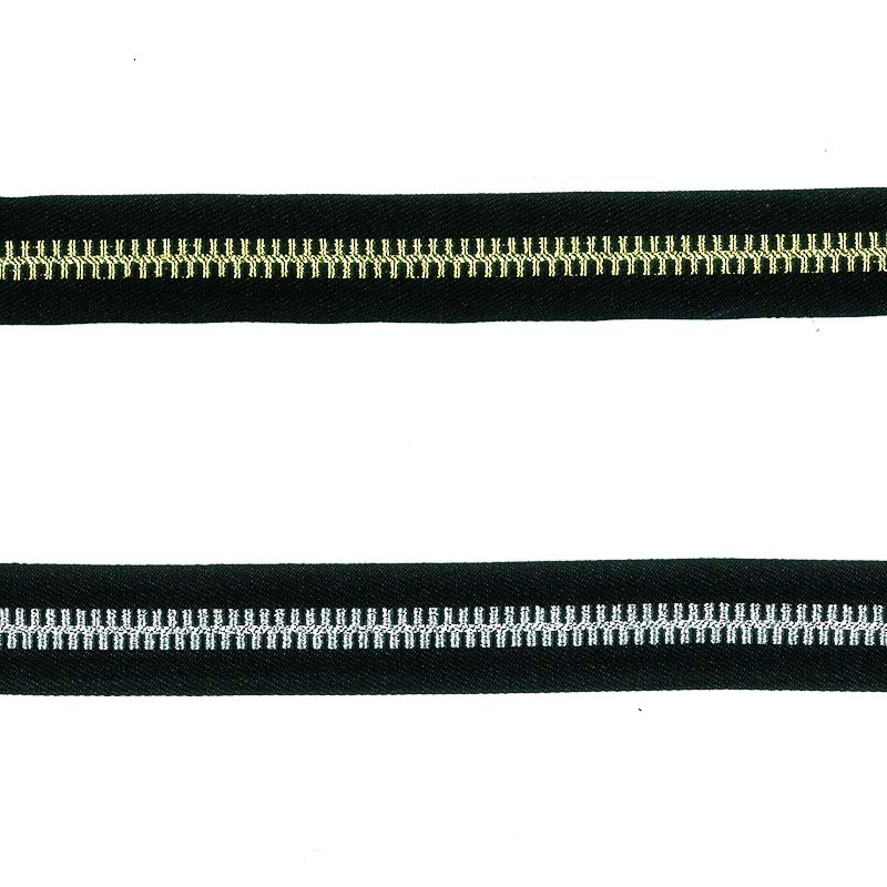 2.5cm wide tape with zipper pattern tape embroidered with metal threads.