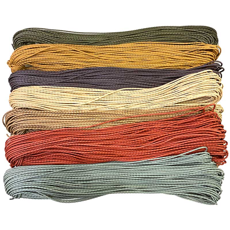 Medium thick wrinkled waxed cord for pouch's drawstring.