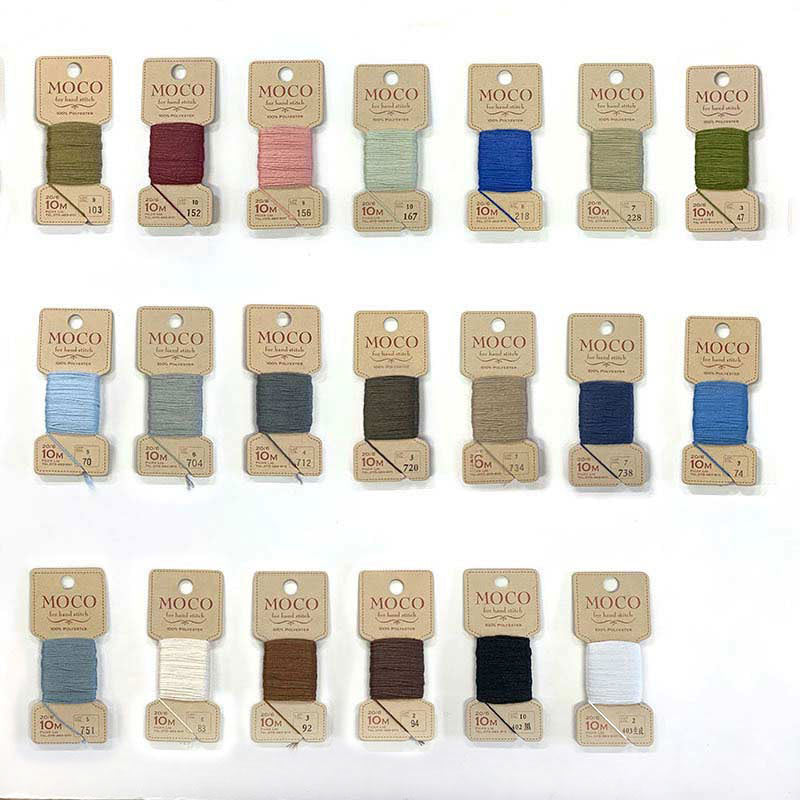 MOCO is a 100% polyester, non-shiny, single-stranded thread that is smooth to stitch with and matches any material.