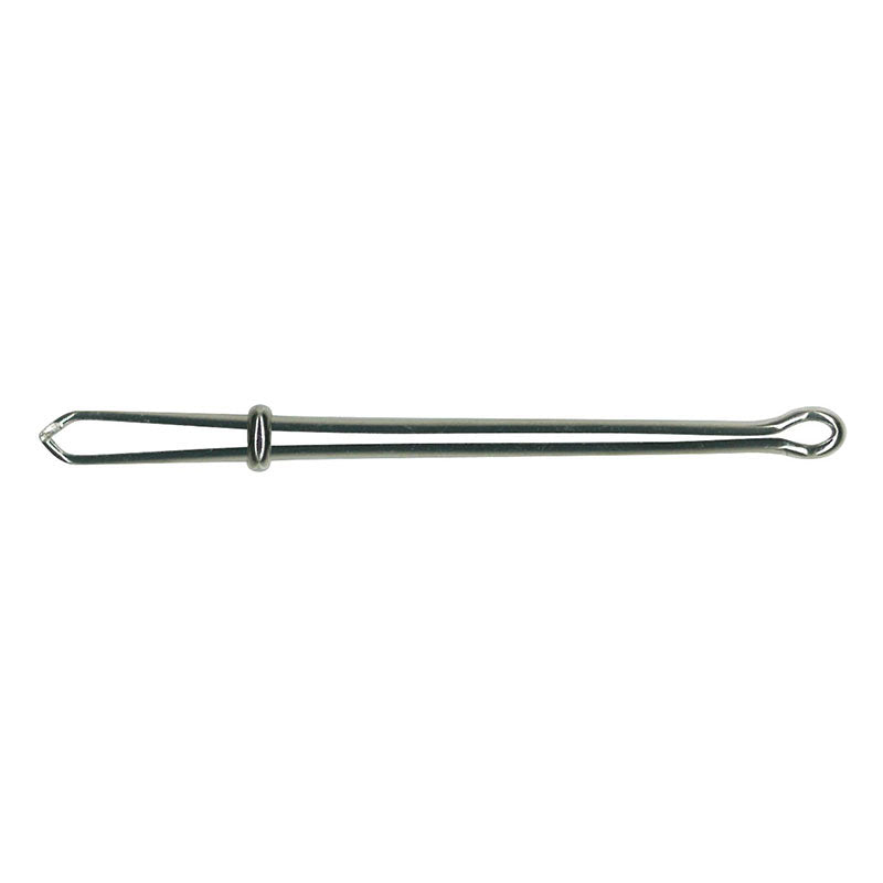 Clover tweezer-type bodkin for pulling strings or rubbers through casings.