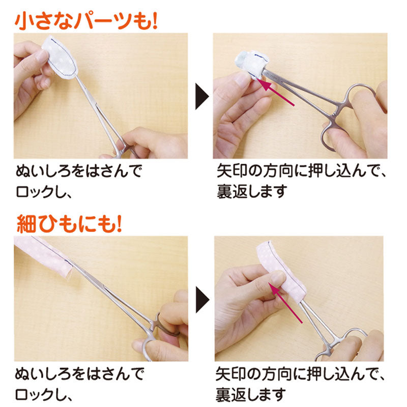 Forceps with scissor-like handles for making dolls, stuffed animals, and more.