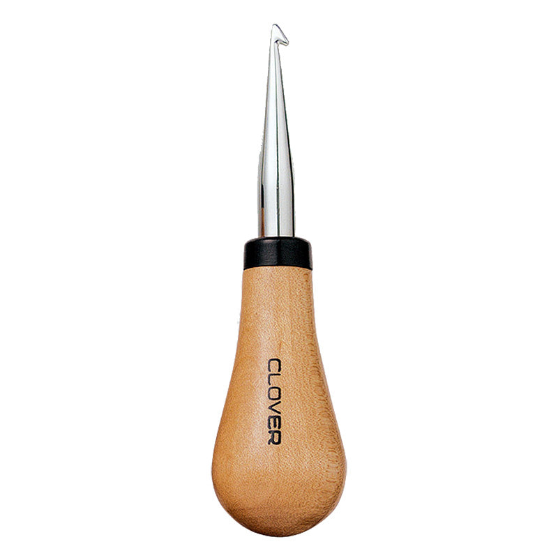 Very useful tool for pulling loops of yarn or fabric through a stiff woven such as canvas.