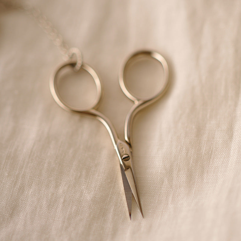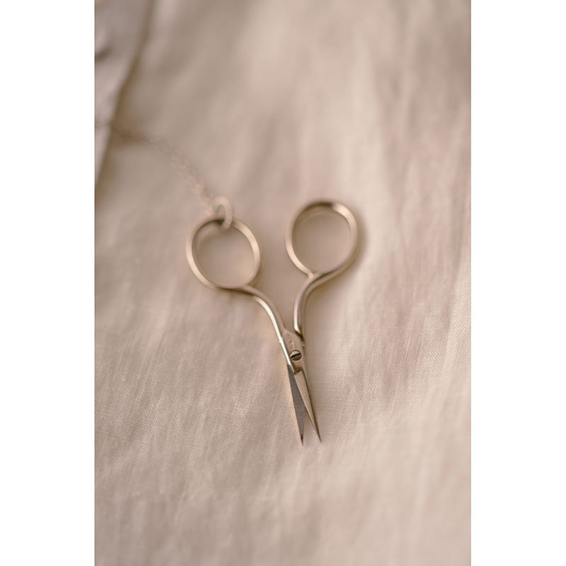 The small scissors are connected to the necklace by a chain so you don't have to worry about losing them.