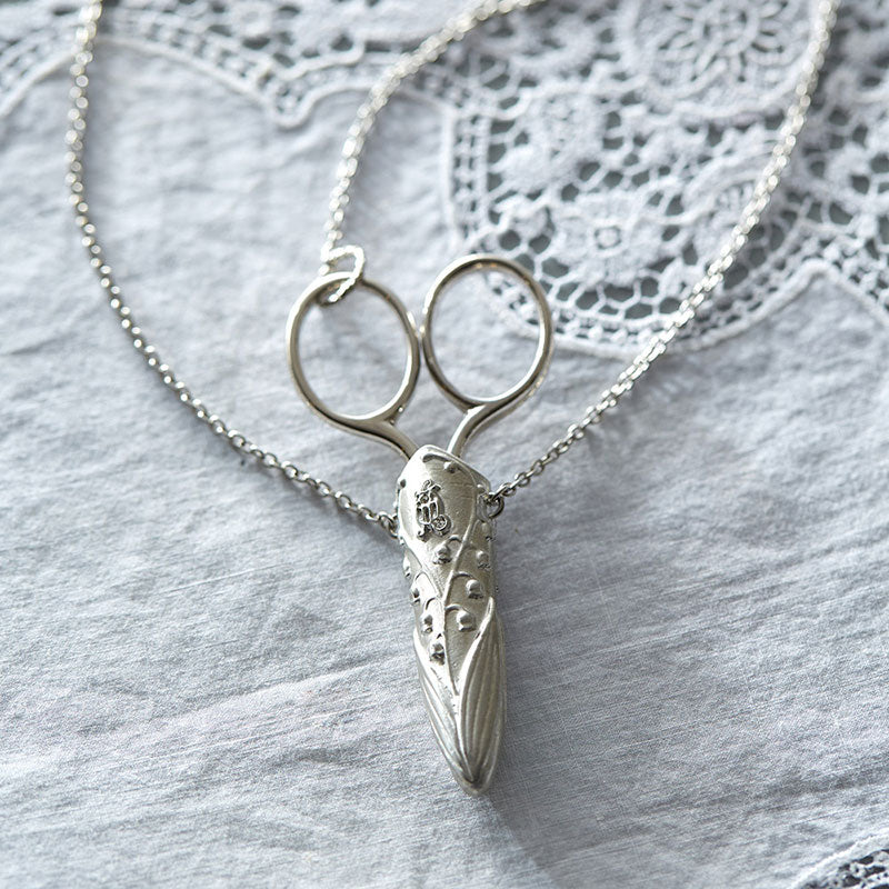 Lily of the valley scissor case that includes tiny scissors.